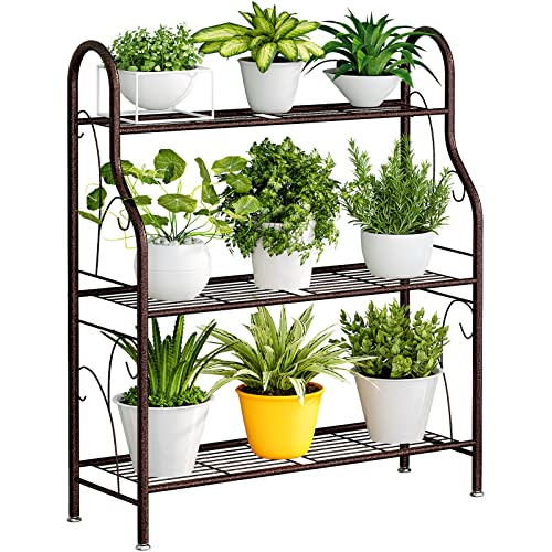 The VyGrow Plant Stand is a durable and versatile shelf that is perfect for both indoor and outdoor use. Made of high-quality thicken metal, it can hold up to 150 Lbs and is rust-proof and corrosion-proof. With its 3-tier design, it provides ample space for your favorite plants or flowers. The elegant design with decorative wires on both sides makes it a great addition to any home style. The stand is easy to assemble and comes with adjustable foot pads for floor protection. Whether you want to showcase your plants, flowerpots, or home decors, this plant stand is a perfect choice. Overall, the VyGrow Plant Stand offers excellent performance, functionality, and aesthetic appeal for your living room, balcony, or garden.
