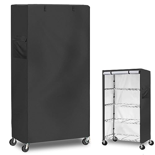 The YLOVAN Storage Shelf Cover Wire Rack Shelving Dust Protective is a premium polyester cotton fabric cover designed to fit storage racks with dimensions of 36''W x 14''D x 54''H. It features a clear PVC window on one side for easy visibility of shelf contents and a solid panel on the other side for privacy. The cover has T-shaped and side zipper openings on the front and back panels, allowing easy access to items on the shelves. Made with durable materials, it is water-repellent and provides protection against dust and dampness. This cover is perfect for garages, basements, warehouses, and storage units. Be sure to measure before purchasing to ensure a perfect fit.