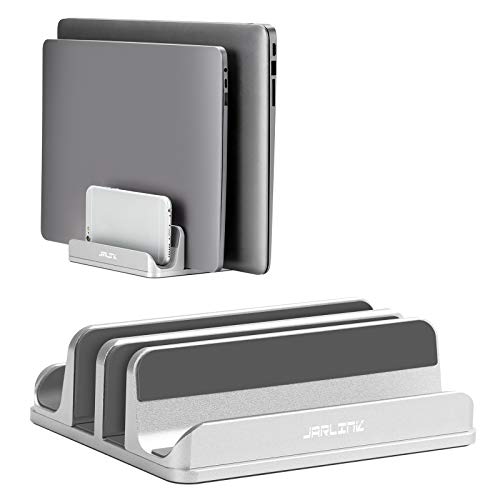 The JARLINK 4-in-1 Adjustable Vertical Laptop Stand Holder is an innovative and versatile solution for organizing and displaying your laptops and cellphones. With its dual slot design, it can hold two laptops and two cellphones vertically at the same time, maximizing your productivity and keeping your workspace tidy. It is adjustable and compatible with a wide range of laptops and devices. The stand is made from sturdy and scratch-resistant materials, ensuring the safety of your devices. It comes with a comprehensive package and reliable support from JARLINK. Overall, this laptop stand offers a practical and stylish solution for desktop organization.