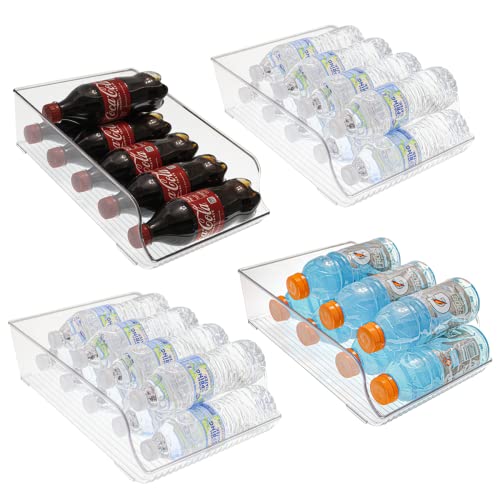 The 4 Pack Wide Water Bottle Storage Organizer, Soda Can Holder and Dispenser is the perfect solution for organizing your crowded refrigerators, freezers, and pantries. This versatile holder can store up to 9 bottles of 500ml water bottles, making it a great space saver. It can also be used to store soda cans, sport drinks, and other beverages. Made of durable and shatter-resistant plastic, this organizer is designed to last. The 4 pack offers great value, as you only need to pay for 1 but get 4. It comes with a gift-ready box, making it an excellent choice for gifting. With a lifetime guarantee, you can be confident in the quality and durability of this water bottle storage organizer.