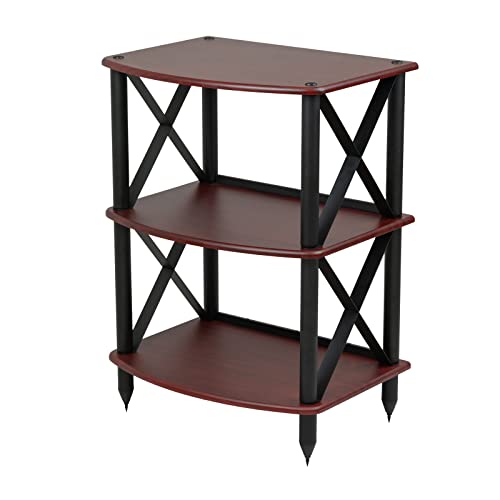 The Pangea Audio Vulcan TT LP Record Player Turntable Stand Rack with Vinyl Storage Rosenut Red is a stylish and functional solution for vinyl enthusiasts. Its sturdy construction and ample storage capacity make it ideal for organizing and displaying a vinyl collection. The modular design allows for customization and easy addition of shelves. The stand’s steel frame and X-braces provide strong support, while the tapered cone feet with spikes ensure stability and protect floor finishes. Additionally, the stand’s attractive Rosenut Red color adds a touch of elegance to any room. Overall, this stand offers a great combination of functionality, durability, and aesthetics, making it a top choice for vinyl enthusiasts.