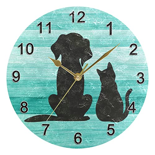 The CHIFIGNO Teal Wood Cat Dog Wall Clock adds a stylish and playful touch to any room. Made of durable PVC material, this clock features a clear and vivid teal wood cat dog design that is both practical and beautiful. With its precise Quartz Sweep Movement, it guarantees accurate timekeeping while remaining absolutely silent. The clock is battery operated and can be placed on a table or hung on the wall. It also makes a perfect gift for various occasions. The CHIFIGNO Teal Wood Cat Dog Wall Clock is small in size, but its cute and functional design will delight any cat or dog lover. Overall, it is a charming addition to any living room, kitchen, bedroom, or patio.
