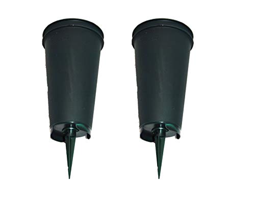 The Cemetery Vase 6 Inch Flat Bottom Green Plastic Memorial Vase is a durable and convenient option for honoring loved ones. Made with leak-proof thicker plastic, these vases feature a detachable spike stake for easy placement on grave sites. The set includes 2 vases that are 6" tall and have a 4" diameter. Proudly made in the USA, these vases are a great way to honor veterans with American-made products. They can hold live or artificial flowers without detracting from their beauty and are allowed in most cemeteries. Additionally, these vases are re-usable, making them suitable for memorials, gravesites, as well as outdoor parties and weddings.