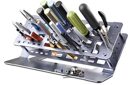 The METALTER Screwdriver Storage Rack is an aluminum alloy tool organizer designed for desktop use. With a 45-degree tilt open design, this rack makes it easy to find and organize your screwdrivers and hand tools. It has a strong bearing capacity, and the bottom platform can hold screws and small parts. This rack is perfect for craftsmen, designers, RC model enthusiasts, and mechanics. It is simple to assemble and fits well on any workspace. However, some users have mentioned that the rack is smaller than expected and more suitable for smaller tools. Overall, the METALTER Screwdriver Storage Rack is a sturdy and convenient solution for organizing your tools.