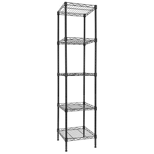 The HOMEFORT 5-Shelving Unit is a versatile and adjustable wire shelving system that is perfect for various storage needs. It can be used in the kitchen, closet, bathroom, garage, and more. The shelves can be easily adjusted to accommodate different items and the included shelf liners prevent small things from falling off. The unit is made of heavy-duty wire and can hold up to 120 pounds per shelf. Its compact size makes it suitable for small spaces. Additionally, it can also be used as a decorative storage solution in the living room or balcony. Overall, it is a sturdy and functional wire rack that offers convenient and organized storage.