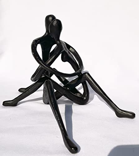 The Konjouror Embracing Couple Iron Sculpture is a beautiful and romantic home decor piece that captures the intimate and passionate moments shared between couples. Made of cast iron, this metal art sculpture is durable and features exquisite design and craftsmanship. It serves as a wonderful gift for special occasions like anniversaries, birthdays, and Valentine's Day, allowing couples to cherish their relationships and strengthen their bond. With its adorable design, the sculpture adds a charming touch to any shelf, desk, bedside table, or fireplace mantel. The bottom of the statue is protected with velour to prevent scratching furniture. Remind yourself and your loved one to embrace every moment with this symbolic work of art.