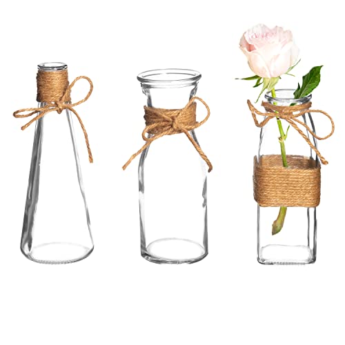 Add a touch of elegance to your home or special event with the Royal Imports Clear Glass Bottle Bud Vase. Made of premium quality glass, these mini vases are perfect for fresh flower arrangements or silk and dried florals. The unique assortment of shapes and intricate design details make these vases stand out from the rest. With their rustic farmhouse charm, they are a hot trend for weddings and parties. Each set of 3 vases is carefully packaged to avoid breakage during transit. Whether you're decorating for a special occasion or sprucing up your home decor, these bud vases are a great choice.