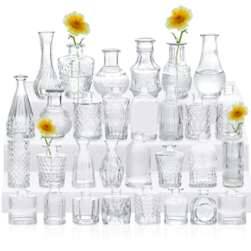 - Vintage Glass Vase: 30 pieces of glass bud vases with assorted embossed patterns design