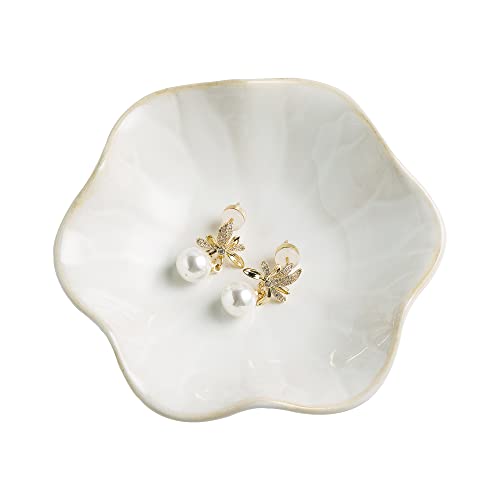 The BEUNAIZER Jewelry Dish Tray is a beautifully designed ceramic trinket tray that serves as a perfect place to store your jewelry, keys, and other small items. Made with glazed ceramic of great quality, this ring dish comes in a milky white color and has a dimension of 4.34Lx4.34Wx1.19H. It is the ideal size to be placed on your bedside table, in the bathroom, or anywhere else you take your jewelry off. With its stylish and minimalist design, it also makes a great decorative piece. This jewelry dish tray is not only functional but also a wonderful gift for friends, sisters, daughters, and mothers on occasions like Anniversaries, Mother's Day, Birthdays, and Thanksgiving. It is easy to clean and comes well packed with a bubble bag and box for safe delivery.