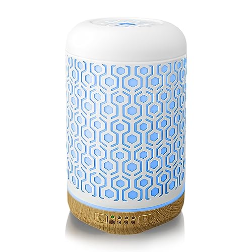 The 550ml Essential Oil Diffuser by DAROMA is a 6-in-1 aromatherapy ultrasonic cool mist humidifier that creates a soothing and refreshing environment. With its all-in-one design, this diffuser can be used as a humidifier, purifier, aroma therapy diffuser, and night light. It features a large 550ml water tank that can run up to 10 hours and operates silently (<35db). The diffuser also comes with 7 color-changing mood lights, allowing you to create a calming ambience in your bedroom. Its natural wood grain coating makes it look elegant and it makes a perfect gift for family and friends. With positive reviews praising its performance and customer service, this diffuser is a great addition to any home or office.