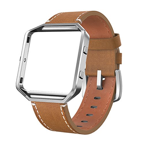 Upgrade your Fitbit Blaze with this stylish and durable leather band with a metal frame. Made of genuine leather, this slim band is designed to provide comfort and a fashionable look. The metal frame adds extra protection to your smartwatch, preventing damage from drops. It is compatible with Fitbit Blaze and is suitable for both men and women. With an easy installation process and adjustable length, this band is convenient to use. The band comes in a brown color and is perfect for leisure places or sports activities. With good quality and a reasonable price, this band is a great replacement option.