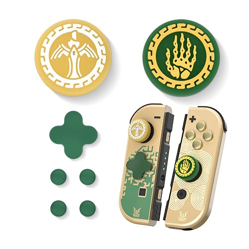 Enhance your gaming experience with the Yebowe Switch Thumb Grip Caps. These cute and comfortable joystick covers are designed for the Switch/OLED/Lite controllers. Made of premium silicone material, they provide extra height and radius for increased precision and comfort while gaming. The caps are easy to install, fitting perfectly on the Joycon controller joystick to protect them from damage. With their Legend of Zelda: Tears of The Kingdom theme, these thumb grip caps add a touch of style to your gaming setup. Enjoy better control and grip during gameplay with these high-quality thumbstick caps.