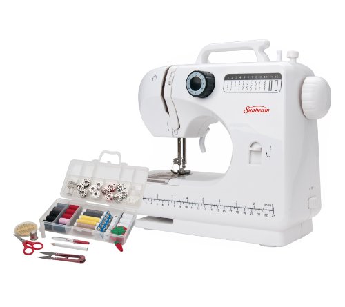 The Sunbeam SB1818 Easy-to-Use Everyday Compact Sewing Machine is a portable and versatile sewing machine perfect for students and beginners. With 18 different stitches including buttonhole and zigzag, this machine allows for a wide range of creative projects. The sewing kit included features over 100-pieces, providing all the basic sewing necessities. The machine also comes with a built-in measuring tape and carry handle for added convenience. While some customers have reported issues with the off/high/low switch and thread tension, overall the machine is well-received by users and offers good value for money.