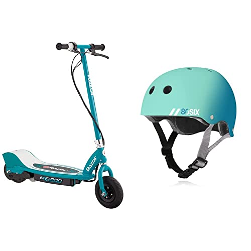 The Razor E200 Electric Scooter and 80Six Dual Certified Kids’ Helmet are a great combo for any kid looking for a fun and safe outdoor experience. The scooter offers a smooth ride with its soft rubber grips and up to 40 minutes of continuous ride time. The helmet, designed by a trusted team, provides durability, protection, and comfort. It complies with safety standards, making it a reliable choice for biking, skating, and scooting. While the long initial charge time and variable run time may be a downside, overall, this product combination offers a great value for money. Get ready to ride in style and safety!