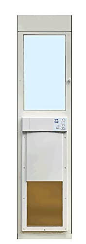 The PlexiDor Performance Pet Doors Electronic Dog Door is a convenient and secure way to give your furry friend access to the outdoors. Designed for large dogs up to 125 pounds and all cats, this door features a hardened ABS panel that slides up and down like a mini electronic garage door. The waterproof collar key, which weighs less than an ounce and does not require batteries, snaps onto your dog's collar. The door is child and dog safe, with a ¼ inch stainless steel deadbolt that ensures it remains securely locked when inactive. With easy one-touch programming, you can add or change codes and set timing for how long the door remains open. The door is available in either white or bronze, with hardened aluminum frames that are durable and scratch-resistant. Manufactured in the U.S.A and backed by a five-year limited residential warranty, the PlexiDor Performance Pet Doors Electronic Dog Door is a reliable and convenient solution for providing your pet with outdoor access.