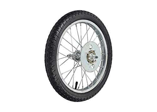 - Includes rear rim, axle, rear tire, inner tube, and drive sprocket