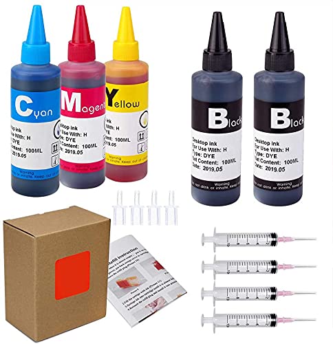 - Package includes: 5 bottles of 100ml dye ink, syringes, filling tips, instruction manual, sealing plugs, gloves, ink pipette.